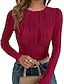 Naisten Pusero Sulka Tyylikäs Vapaa-aika Pitkähihainen Tiukka pyöreä kaula-aukko Tavalliset topit Päivittäin Tilkkutäkki salvain vihreä Musta Punastuvan vaaleanpunainen Rubiini Laivastosininen Kevät