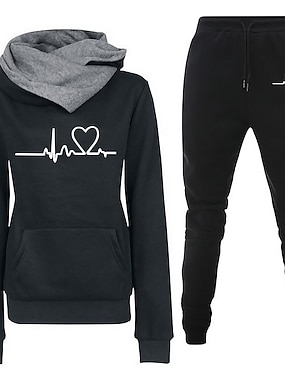Naisten Lämmin Urheilu Huppari Verryttelypuku Housusarjat Lenkkeilijät Housut Pitkähihainen Hupullinen Sydän Kurenauha Painettu ulko- Kausaliteetti Musta Sininen Apila Syystalvi Normaali