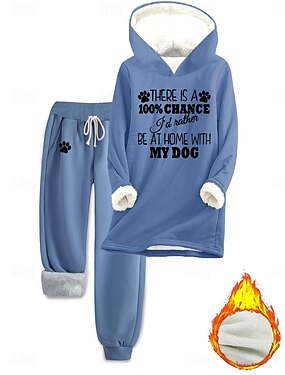 Naisten 2-osainen loungewear-setti hupparit verkkarit rento kylmän sään lauseprintti fleecevuoraus mukava istuvuus talvi