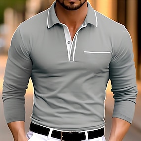 Miesten Golfpaita Golf poolopaidat Työ Kausaliteetti Kauluskäänne Pitkähihainen Perus Moderni Tavallinen Napit Kevät Syksy Normaali Denim sininen Musta Laivaston sininen Vaalean harmaa Armeijan
