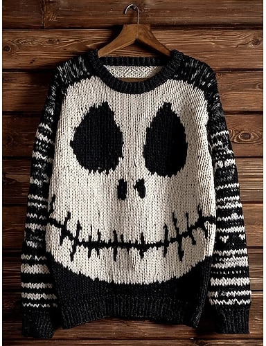 Halloween-naisten neulekjerroin Kallo Söpö Katumuoti Rentoa Graafinen Kallo Pyöreä Kaula Patches Neulottu Pitkähihaiset Tavalliset Paidat NeulottuMusta Punainen Syksy Talvi