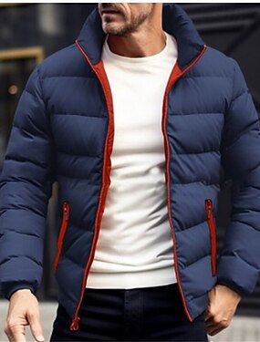 Miesten Talvitakki Puhujakki Pehmustettu takki Tasku Polyesteria Loma Arki-asut Deitti Normaali Muoti Vapaa-aika Mukava Pidä lämpimänä Talvi Yksivärinen / yksivärinen Musta Punainen Laivaston sininen