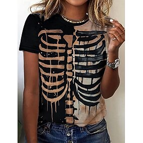 Naisten t-paita pääkallot graafinen luuranko vintage tyylikäs rento lyhyet hihat pyöreä kaula-aukko säännölliset yläosat päivittäin ulos viikonloppu printti vaaleanpunainen sininen violetti vihreä