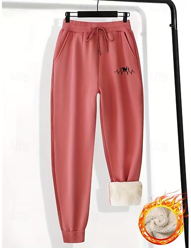 Naisten Veryttelyhousut Loma Vintage Etninen tyyli Täyspitkä Korka vyötärö Sydän Kurenauha Tasku Fleece Pidä lämpimänä Tuulenkestävä Mukava Erittäin elastinen Loma Muodollinen Katu Tumma harmaa Musta