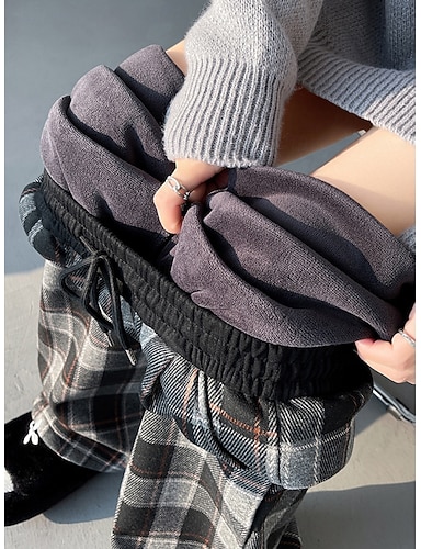 Naisten Fleece-housut Kiinalainen Palazzo housut Muoti Katutyyli Perus Täyspitkä Korka vyötärö Skottiruutukuvio Tasku Elastinen vyötärönauha Tulostus Mukava Pehmeä Elastinen ulko- Katu Sininen Musta