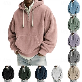 Miesten Huppari Vakosametti Pullover-huppari Quarter vetoketjullinen huppari Aprikoosi Musta Valkoinen Vaalean vihreä Punastuvan vaaleanpunainen Hupullinen Tavallinen Kengurutasku Textured