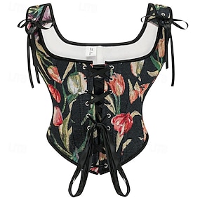 Retro / vintage Keskiaika Renessanssi Korsetti Liivi Bustier Kukka Jakardi Naamiaispuku Naisten Kelttiläinen Fantasia Halloween Karnevaali Juhla Rento / arki LARP Aikuisten Korsetti