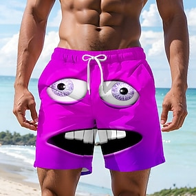 Miesten 3D sarjakuva Hymynaama Isot silmät Uimahousut Uimashortsit Surffishortsit Keskivyötärö Hauska ulko- Loma Arkikäyttö Sivutaskut Verkkovuori Joustava kiristysnyöri vyötäröllä Suunnittelija
