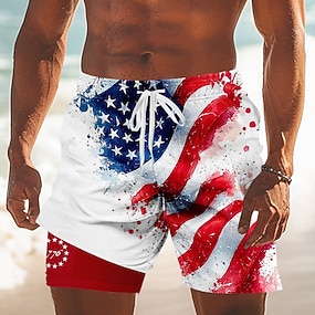 Itsenäisyyspäivä miesten US-lippu patrioottiset 1776 vuoratut shortsit 2 in 1 lauta-shortsit uimahousut keski vyötärö loma sivutaskut kompressiovuoressa joustava naru vyötärö