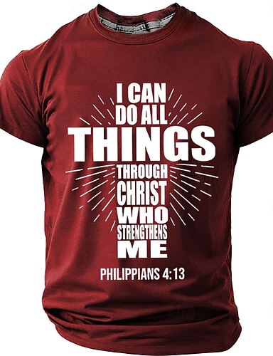 Miesten yksivärinen risti-raamattu-t-paita lyhythihainen t-paita 3D-printti pyöreä kaula-aukkoinen paita vintage retro päivittäin festivaali sininen musta burgundi kesä kevät vaatteet vaatteet s m l