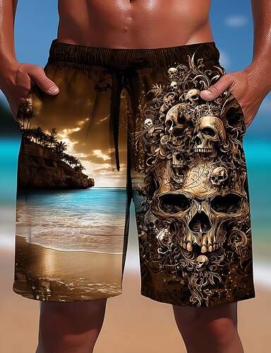 Miesten Vintage Merivesi Pääkallot Uimahousut Uimapuvut Uimahousut Surffishortsit Keskivyötärö Havaijilainen ulko- Loma Sivutaskut Verkkovuori Joustava kiristysnyöri vyötäröllä Suunnittelija Vaatetus