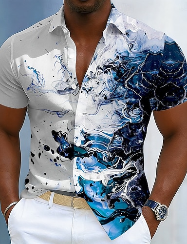 Miesten Marmori Abstrakti nestemäinen taide Paita Button Up paita Lyhythihainen Muoti rento Päivittäin ulko- Loma Kesä Kevät Sänkyjen avaus 3D-tulostus Pellava kuin paita Sininen Purppura Apila