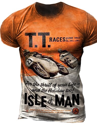 Miesten Kuvitettu Kirjain Moottoripyörä T-paita Lyhythihainen T-paita 3D-tulostus Tiukka pyöreä kaula-aukko Paita Vintage Muoti Suunnittelija ulko- Kausaliteetti Päivittäin Oranssi Kesä Vaatetus S M