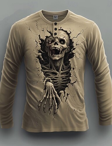 Miesten Kuvitettu Zombeja Henley-paita Pitkähihainen Muoti söpö tyyli Päivittäin Kausaliteetti Pyhäpäivä Bile Syksy 봄 & Syksy Sininen Purppura Ruskea Vihreä Khaki Henley Henley T-paita