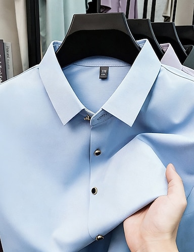 Miesten Paita Pukupaita Ei-rautapaita Yhtenäinen väri ulko- Työ Vaalea vaaleanpunainen Musta Valkoinen Samppanja Lyhythihainen Sänkyjen avaus Kesä Kevät Vaatetus Napit