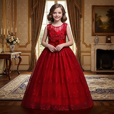 Lapset Tyttöjen Mekko Juhlamekko Yhtenäinen väri Hihaton Muodollinen Suoritus Erikoistilaisuus Pitsi Silmukka Muoti Päivittäin Prinsessa Polyesteri Maxi Juhlamekko Kellomekko Tyllimekko Kesä Kevät 4