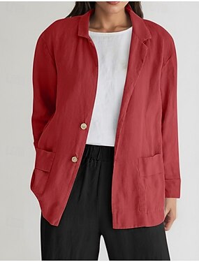 Naisten pellavainen takki rento mukava hengittävä napit tyylikäs päivittäin yksinkertainen retro yksivärinen rento normaali lovi kaulus löysä istuvuus pitkähihainen päällysvaate musta oliivinvihreä
