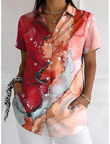 Naisten Paita Napit Painettu Kuvitettu Geometrinen Vintage Tyylikäs Moderni Lyhythihainen Paitapuserokaula-aukko Tavalliset topit Päivittäin Sininen Rubiini Purppura Apila Kesä Kevät