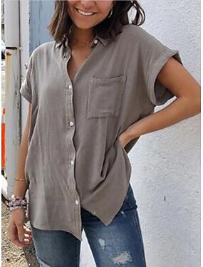 Naisten Pusero Keinopuuvillainen pellava Napit Yhtenäinen väri Tyylikäs Vapaa-aika Lyhythihainen V kaula-aukko Tavalliset topit Päivittäin Pyhäpäivä Musta Valkoinen Ruskea Kesä