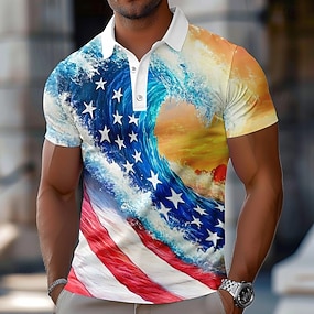 4. heinäkuuta 2026 250. Miesten Amerikan lippu Polo Lyhythihainen Poolopaidat Kauluspaidat Vintage Vapaa-aika ulko- Urheilu- ja treenivaatteet 3D-tulostus Napit Kesä Sininen Valkoinen Tumman sininen