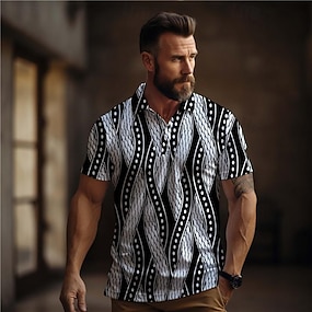 Miesten Geometrinen Vohveli poolopaidat Golfpaita Lyhythihainen Poolopaidat Kauluspaidat Lomavaatteet Muodolliset vaatteet Festivaalivaatteet 3D-tulostus Napit Kesä Kevät Musta