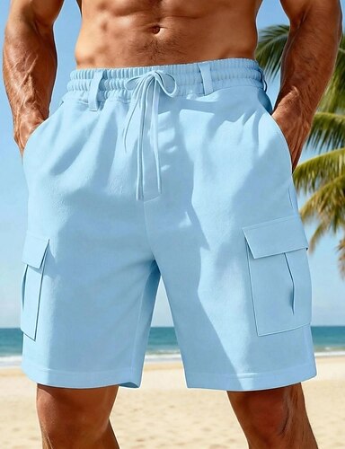 Miesten Shortsit Liinavaatteet Kesähousut Rantahousut Kurenauha Tasku Joustava vyötärö Tavallinen Mukavuus Hengittävä Polven pituus Päivittäin ulko- Hiekkaranta Loma Muoti Musta Valkoinen Joustamaton