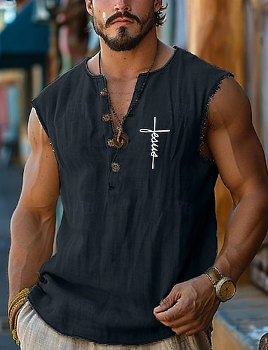 Miesten Paita Pellava paita Kesä paita Ranta-asut Button Up paita Hupullinen paita Yhtenäinen väri Loma Katu Sininen Musta Valkoinen Apila Hihaton Hupullinen Kesä Kevät Vaatetus