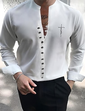 Miesten Kesä paita Button Up Paidat Etninen paita Usko ulko- Juhla Valkoinen Pitkähihainen Pystykaulus Kevät kesä Vaatetus Painettu
