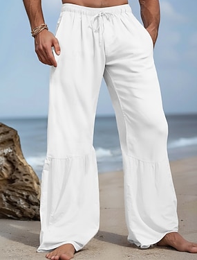 Miesten Pellavahousut Housut Kesähousut Rantahousut Kurenauha Sivupainike Suora jalka Tavallinen Mukavuus Hengittävä Täyspitkä ulko- Päivittäin Pyhäpäivä Muoti Klassinen tyyli Musta Valkoinen