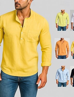 Miesten Paita pellava paita Kiinalainen kauluspaita Mandarin kauluspaita Rento paita Puuvillainen paita Tavallinen Loma Katu Musta Keltainen Vaalean vihreä Punastuvan vaaleanpunainen Lyhythihainen