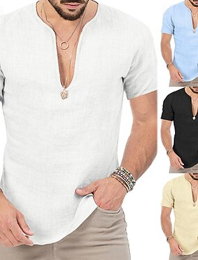 Miesten Paita Pellava paita Band kauluspaita Popover paita Kesä paita Ranta-asut Tavallinen Loma Pyhäpäivä Musta Valkoinen Keltainen Viini Pitkähihainen Henley Kesä Kevät Vaatetus