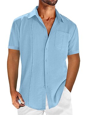 Miesten Paita pellava paita Puuvillainen pellava paita Guayabera paita Kesä paita Rantapaita Tavallinen Loma Kausaliteetti Musta Valkoinen Laivaston sininen Sininen Lyhythihainen Kauluskäänne Kesä