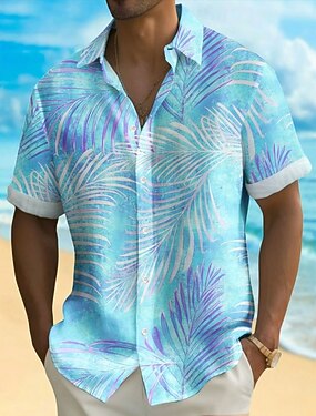 Miesten Palmu lehtiä Trooppiset kasvit Paita Havaiji paita Button Up paita Lyhythihainen Havaijilainen Lomakeskus Loma Pyhäpäivä Ranta-asut Kesä Kevät Sänkyjen avaus 3D-tulostus kauluspaidat Sininen