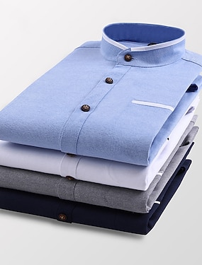 Miesten Paita Band kauluspaita Pukupaita Oxford paita Button Up paita Häät Loma Valkoinen Laivaston sininen Harmaa Vaalean sininen Pitkähihainen Pystykaulus Kevät kesä Vaatetus Edessä tasku