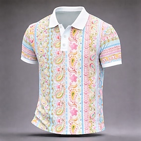 Miesten Paisley-kuvio Poolopaidat Lyhythihainen Poolopaidat Kauluspaidat Vapaa-aika Urheilu- ja treenivaatteet Ulkoiluvaatteet Arki-asut 3D-tulostus Napit Kevät kesä Sininen Purppura Apila