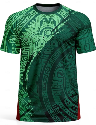 Miesten Jalkapallopaita Geometrinen Atsteekki Brasilia Puserot Urheilullinen T-paita Kesä Lyhythihainen Kausaliteetti Urheilullinen Spandex UPF 50 Nopea kuivuminen Kosteuden siirtävä Hengittävä