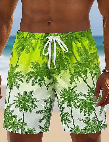 Miesten Kookospuu Kaltevuusväri Trooppiset kasvit Uimahousut Uimapuvut Uimahousut Surffishortsit Keskivyötärö Havaijilainen ulko- Loma Arkikäyttö Sivutaskut Verkkovuori Joustava kiristysnyöri