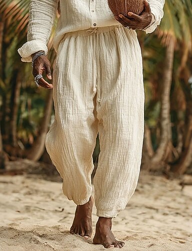 Miesten Lenkkeilijät Housut Kesähousut Roikkuvat housut Rantahousut Kurenauha Joustava vyötärö Tavallinen Mukavuus Pehmeä Täyspitkä Päivittäin Hiekkaranta Pyhäpäivä Loma Hip Hop Sininen Musta