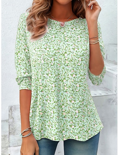 Naisten T-paita Painettu Kukka Kuvitettu Tyylikäs Klassinen Vapaa-aika Lyhythihainen Pikeepaita Tavalliset topit Kausaliteetti Päivittäin Urheilu Sininen Punastuvan vaaleanpunainen Purppura Apila