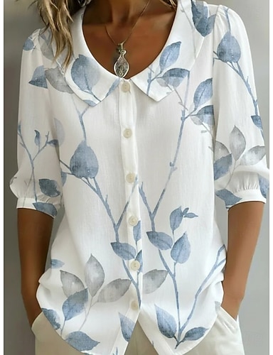 Naisten Pusero Puuvillainen paita Napit Yhtenäinen väri Tyylikäs Perus Vapaa-aika 3/4 hiha Paitapuserokaula-aukko Tavalliset topit Päivittäin Sininen Valkoinen Punastuvan vaaleanpunainen Rubiini Apila