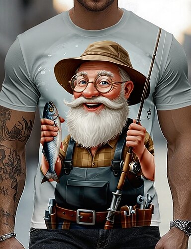 Miesten Vanha mies Kalastus T-paita Lyhythihainen T-paita 3D-tulostus Tiukka pyöreä kaula-aukko Paita Liioiteltu Suunnittelija Päivittäin Klubi Juhla Valkoinen Harmaa Kesä Kevät Kaikki vuodenajat