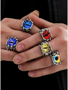 Miesten halloween-lohikäärmeen silmäseossormus, goottilainen punk-tyylinen säädettävä hirviösilmäkoru cosplayhin, juhliin ja festivaaleille