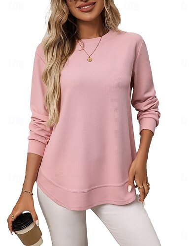 Naisten Neulos Muoti Yhtenäinen väri Joustin Tiukka pyöreä kaula-aukko Kudottu Epäsymmetrinen helma Pitkähihainen Tavalliset topit Neuloa ulko- Päivittäin Pyhäpäivä Harmaa Syksy