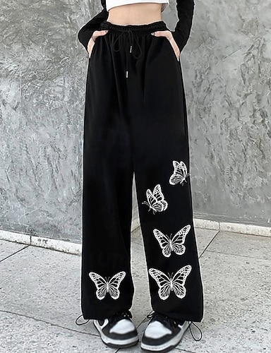 Naisten Leveälahkeiset housut Urheilulliset collegehousut Urheilulliset oloasunhousut Tasku Korka vyötärö Alaosat Urheilu- ja treenivaatteet Jumppa Treeni Syksy Muoti Ulkoilu Urheilu Juoksu Loose Fit