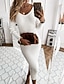 Naisten Midimekko Neulemekko Rento mekko Tyylikäs Muoti Moderni ulko- Päivittäin Bile Normaali Tavallinen Pitkähihainen Tiukka pyöreä kaula-aukko Musta Valkoinen Vaalean ruskea Sininen Kevät Syksy