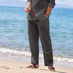 Miesten Pellavahousut Housut Puvunhousut Kesähousut Rantahousut Edessä tasku Suora jalka Tavallinen Mukavuus Hengittävä Täyspitkä Muodollinen liiketoiminta Pyhäpäivä Muoti Perus Musta Valkoinen