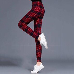 Naisten Sukkahousut Leggingsit Mukavat leggingsit Katutyyli Vapaa-aika Täyspitkä Korka vyötärö Skottiruutukuvio Joustava vyötärö Hengitettävyys Elastinen Loma Katu Arki-asut Sininen Purppura