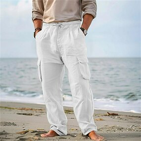 Miesten Pellavahousut Housut Kesähousut Rantahousut Edessä tasku Suora jalka Tavallinen Mukavuus Hengittävä Kausaliteetti Päivittäin Pyhäpäivä Muoti Perus Musta Valkoinen
