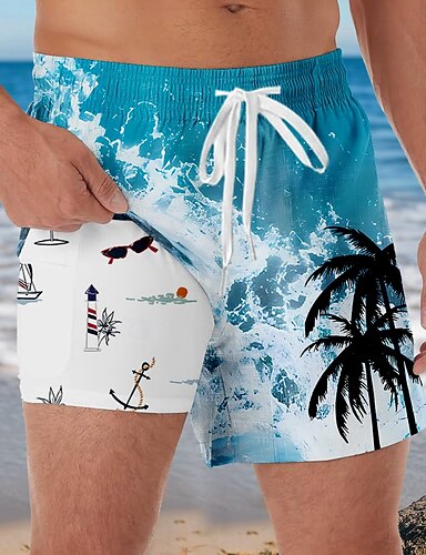 Miesten Kookospuu valtameri Trooppinen Vuoratut shortsit 2 in 1 uimashortsit Uimashortsit Keskivyötärö Havaijilainen Loma Ranta-asut Sivutaskut Compression Linerin kanssa Joustava kiristysnyöri