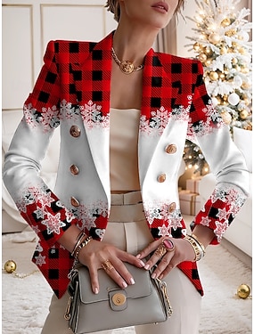 Naisten Bleiseri Mukava Hengittävä Napit Painettu Muoti Vapaa-aika Skottiruutukuvio Katu Kausaliteetti Arki-asut Kaksirivinen Normaali Lovikäänne Normaali Pitkähihainen Päällysvaatteet Rubiini